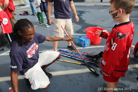 On Saturday morning, the Caps concluded their 2012 Development Camp with a special event for all the fans. Washington Capitals Fanfest was a day filled with fun for the whole family including face painting, street hockey, ice skating, moon bounces, and more. Hundreds of fans came out for the fun, and here are a few pictures from the event.